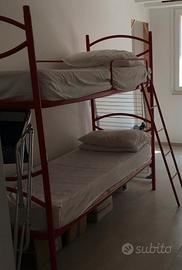 Come da fotografia sono due letti a castello. Il letto a castello Bianco è in legno verniciato bianco ed è compreso di materassi. Il letto a castello rosso e in ferro ed è privo di materassi. I letti sono