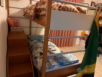 Per inutilizzo vendo un sistema di 2 letti a castello comprensivo di materassi con mobile contenitore e sistema di fissaggio come da foto.
