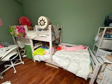 Vendo letti a castello come in foto usati poco. Struttura bianca in legno , dotato di cappottina ad arco, completi di materassi.