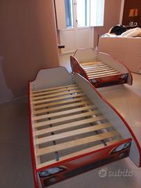 vendo per inutilizzo 2 letti a forma di automobile compresi di 2 materassi, 2 traversine impermeabili e 2 coprimaterassi rossi, il prezzo per tutto questo è di 130€ è possibile anche acquistare 1 letto, 1 materasso, 1 traversina impermeabile e 1 comprimaterasso rosso al prezzo di 70€