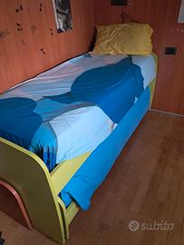 Vendo 2 letti singoli a ponte completi di materasso. Tenuti benissimo. Struttura verde, con doghe perfette. Il letto più alto è lungo 207, largo 90 e alto 83,mentre quello sotto è lungo 200,largo 99 e alto 48. Il letto inferiore è dotato di rotelle,perfettamente funzionanti, per un agevole estrazione.