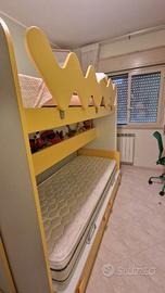 Causa cambio tipologia di cameretta, vendo letto a castello scorrevole Colombini, colore bianco con inserti gialli (come da foto). Una soluzione intelligente e di design per ottimizzare lo spazio, ideale per camere condivise o ambienti più piccoli, case di campagna, B&B.