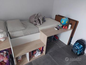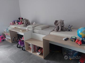 Vendo N°2 letti cameretta con scrivania integrata come da foto. N°2 letti 250 € trattabili N°1 letto 140 € .