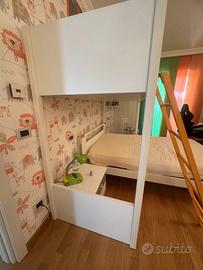 N°1 LETTO SINGOLO A CASTELLO COMPLETO DI STRUTTURA, DI MATERASSO, SCALA E PROTEZIONE COME DA FOTO.
