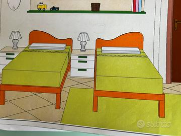 Vendo 2 strutture letto Colombini modello Giano con testiere simmetriche color Melone (da una piazza) + 2 reti in doghe. É disponibile con un letto anche un materasso in memory sfoderabile Extracool. Le varie combinazioni e i rispettivi prezzi sono i seguenti: - 1 struttura letto + doga: 100€ - 1 struttura letto + doga + materasso: 150€ -2 strutture + doghe: 180€ Tutto é in ottime condizioni, l’ultima foto mostra il progetto della cameretta iniziale con i 2 letti.