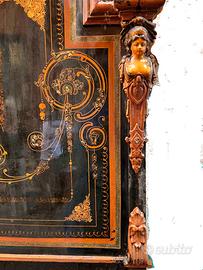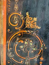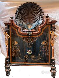 Due bellissimi letti di ferro dell'800 napoletano. Sono decorati con statuine e con elaborati intarsi di madreperla. Ciascuno letto ha sia la testata che la parte dei piedi finemente decorata. Una vera delizia antiquaria!