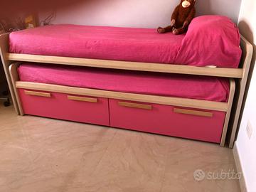 Vendo letto estraibile con due cassettoni rovere chiaro e ante cassetti fucsia. Regalo i materassi.