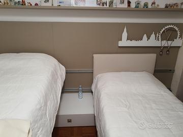 Due letti singoli due livelli impilabili sovrapponibili scorrimento laterale su guida in pannello a testata completo di luce led con porta lampada grafico. Larghezza 100 lunghezza 200 circa in regalo specchio parete dimensione ragazza sagoma ballerina