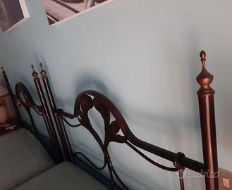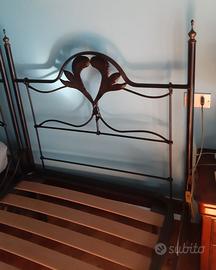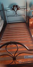 Coppia di letti gemelli interamente in ferro battuto con supporto per materasso in doghe in legno. I letti gemelli possono anche essere affiancati e formare un letto matrimoniale. Proposti senza i materassi, sono visibili in Voghera (PV).