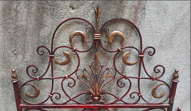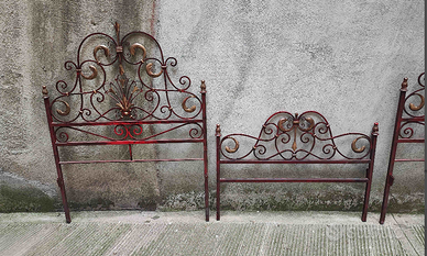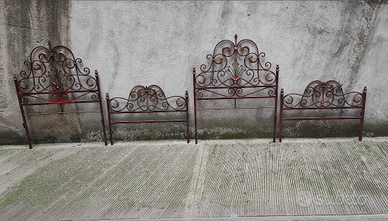 letti in ferro battuto ,solo testiere e piedere originali anni 40 e di grande bellezza decorativa visibili e ritirabili a Milano . Il pezzo si riferisce ai due letti. MISURE: testata cm.119 x 92 piedera cm.92 x 68