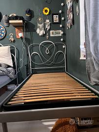 Nr. 2 Letti singoli in ferro battuto marca Bontempi rifinitura argento antichizzato completi di rete a doghe per materasso 90x190 (ma può tranquillamente eccogliere un materasso 90x200)