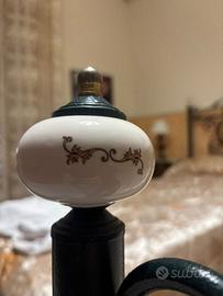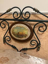 Letti in ferro battuto verde scuro con dettagli oro, pomelli in ceramica e medaglione in legno dipinto. Prezzo leggermente trattabile