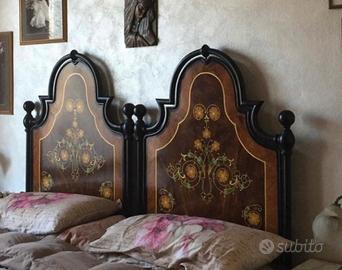 Coppia di letti in ferro fine 800 con testata e pediera dipinti completi di reti.