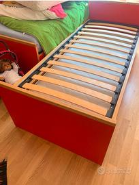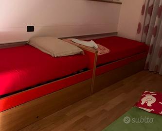 Vendo due letti singoli in legno rovere massiccio con anta a ribalta con possibilità di inserire rete ed annesso materasso. Il prodotto in vendita si compone di: 2 strutture letto + 2 reti con doghe in legno. Usati pochissimo, come nuovi. Le reti misurano 190 cm x 80 cm. La struttura del letto misura 195 cm x 85 cm.
