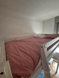 Vendo due strutture letto con i rispettivi materassi, utilizzati da tre anni. •Quello a soppalco 200 euro, misure 140x200 materasso, struttura invece 213×207x214 •L'altro a 100 euro, misure 120x190 struttura e materasso Vendo anche scrivania con rispettiva sedia a 60 euro Per chi interessato mi contatti, il ritiro e lo smontaggio è a vostro carico.