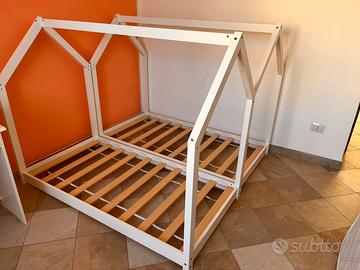 Vendo n. 2 lettini per bambini Montessori a forma di casetta. Molto graziosi, rendono la cameretta molto accogliente, mentre la biancheria è ideale per chi ha bambini con allergia all’acaro della polvere. Le mie bambine ci hanno dormito pochissimo.