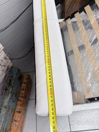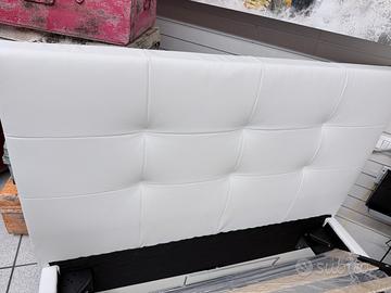 Letto con contenitore in ecopelle bianco neve, con pannelli in legno molto resistenti, un letto molto ben fatto con piedi h.12 di base per agevolare il