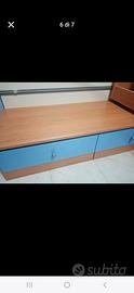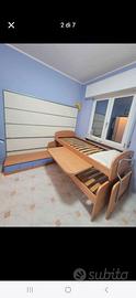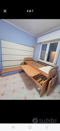 Due mezzi letti 190x85 scorrevoli a parete con scrivania incorporata e base con cassettiera