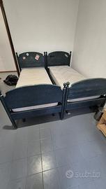 Vendo 5 letti singoli, due con base azzurra e tre con base marrone, tutti in buone condizioni e compresi di materasso.