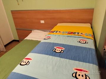 Vendo letti singoli scorrevoli su pannello lungo m. 2,55. Doghe in legno, materassi in ottime condizioni. Entrambi i letti sono molto pratici, hanno le ruote gommate con blocco e possono scorrere uno sopra l' altro agevolando la pulizia e il riordino. Ottima soluzione salva spazio. Sono stati sempre usati da bambini. Acquistati in mobilificio, sono in ottimo stato. Al momento i letti si possono vedere montati, ancora per qualche settimana. No perditempo. Non spedisco.