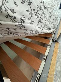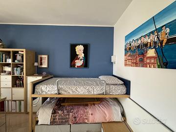 Vendo coppia di letti scorrevoli salvaspazio con panca integrata, ideali per camerette o stanze degli ospiti. Struttura solida in legno rovere, colore neutro facilmente abbinabile a qualsiasi arredamento. I letti scorrono uno sotto l’altro per ottimizzare lo spazio durante il giorno. Inclusa una comoda panca.