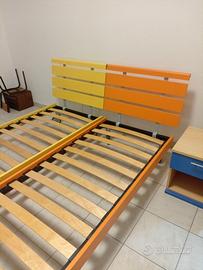 Vendo per inutilizzo due letti singoli in legno e spalliere in alluminio misure 195 x 85 cm uno giallo e l'altro arancione con ruote e doghe incluso un comodino il tutto è in ottime condizioni..!!