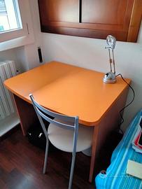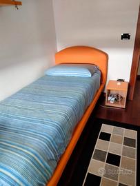 Vendiamo letti singoli, uno con rivestimento in blu e l'altro con rivestimento in arancio in abbinata con la scrivania. Inoltre vendiamo due comodini in legno con doppi cassetti ampi da poter abbinare ai due letti. Il prezzo è inteso su tutti gli articoli, ma a richiesta li vendiamo anche separatamente.
