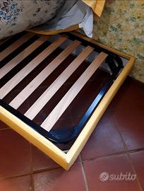 2 Letti singoli imbottiti sfoderabili in tessuto di cotone giallo comprensivi di rete a doghe 85x190 e coprimaterasso misure letto: larghezza.93 lunghezza 193 altezza testiera 94 altezza giroletto 29 Singolo… 70 Due….120