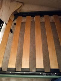 Vendesi per inutilizzo coppia di letti singoli in ferro battuto di colore verde, compresi di materasso ortopedico e rete con le doghe in legno. Praticamente mai usati.