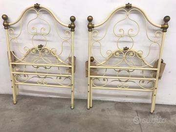 letti singoli in ferro verniciati color beige con rifiniture in oro, composti da testiera, pediera e sponde laterali prodotti dalla ditta Barel.