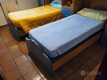 I letti sono robusti, ben tenuti e si possono usare separati oppure affiancati per creare un matrimoniale. Ideali per cameretta, stanza ospiti o casa vacanze.