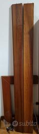 Vendo due letti singoli in legno, completi di testiera, pediera, sponde laterali e reti a doghe in legno.