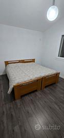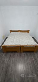 2 letti singoli misure 95 x 2000, compresi di struttura in legno, reti e materassi. In buono stato. Nella foto sono vicini per formare un matrimoniale.