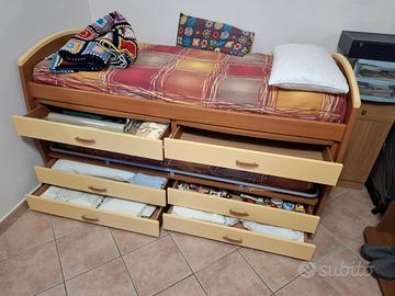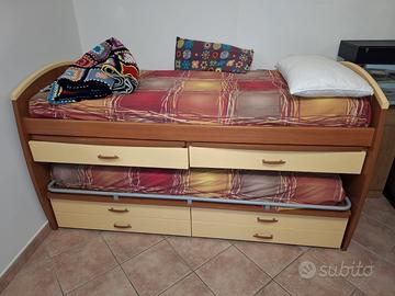 Vendo due letti singoli per cameretta, la struttura comprende anche due scrivanie estraibili e sei cassetti