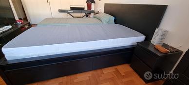 Vendo causa cambio casa n. 2 letti singoli Mod Ikea MALM in legno colore nero con reti a doghe completi di n. 2 contenitori sottotetto sfilabili con rotelle ciascuno e n. 2 materassi a misura in memory foam sfoderabili e lavabili in lavatrice . Usati pochissimo .