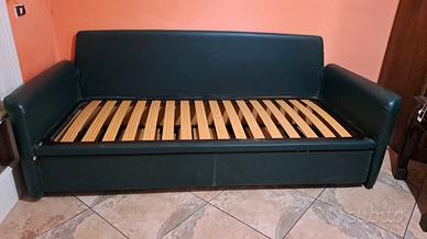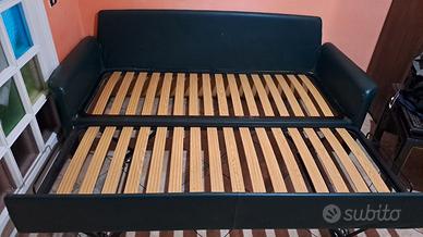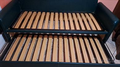 lettino salvaspazio con lettino scorrevole che si alza per creare anche letto matrimoniale. ideale per camera ospiti o cameretta dei ragazzi. coi cuscini e la copertura sembra un divanetto