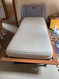 Vendo per inutilizzo blocco di 2 letti singoli in buono stato completi di reti doghe in legno e un solo materasso in lattice usato poco completo di coprimaterasso .No perditempo vedere foto non posso spedire.