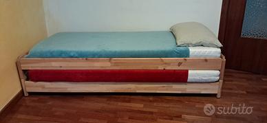 letti in legno ikea sovrapponibili con doghe (senza materassi) leggerissimo e facile da montare. ideali per camera dei ragazzi se non c'è troppo spazio perche una volta sovrapposti possono essere usati come divano. i letti hanno un sistema di fissaggio tra di loro quindi non si muovono.