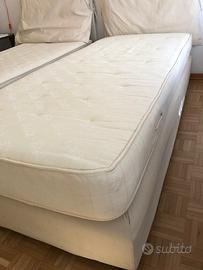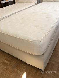 MATERASSI ortopedici singoli marca Flou, con molle in acciaio temperato diametro 2,20, isolante di poliuretano densità 30, feltro di irrigidimento, imbottitura lato invernale in lana e lato estivo in cotone, rivestimento in puro cotone 100%.