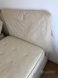 TESTATA E BASE imbottita e rivestita in tessuto di cotone millerighe di colore beige completamente sfoderabile e lavabile a 40 gradi con pratiche chiusure in velcro.