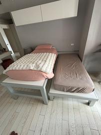 Vendo n. 2 letti singoli Tumidei, scorrevoli e con rifiniture in alluminio, completi di materassi. Le misure sono presenti nel descrittivo di Tumidei. Permettono di ottimizzare lo spazio secondo le necessità grazie allo scorrimento sulla trafila. Per camere Smart, monolocali e stanze moderne. Mobile sotto letto e Trasporto non inclusi.