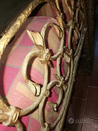 Letti vintage in ferro battuto, lavoro artigianale di un fabbro abruzzese realizzati nei primi anni settanta. Il disegno è originale e molto elaborato, grezzo e raffinato nello stesso tempo. Ha necessità di una bella opera di restauro per ritornare al massimo del suo splendore, è un oggetto per amatori o collezionisti. All'epoca furono decorati con vernice dorata e posti nella cameretta di due sorelline.