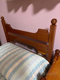 Bellissima coppia di lettini per cameretta in legno di douglas massello, completi di comodino, reti a doghe e materassi pirelli, tutto in ottime condizioni