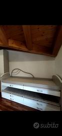 Con bracciolo protettivo , sei cassettini e due scrivanie a scomparsa. (Materassi compresi )