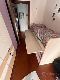 Letto per cameretta compreso materasso scaletta compreso di tre materassi. Composto da un letto superiore e altri due letti estraibili. lunghezza 2 m profondità 90. il letto comprende due scrittoi. prezzo leggermente trattabile.