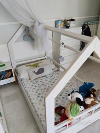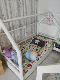 Vendo 2 lettini montessoriani a forma di casetta completi di materasso, per rinnovo cameretta. Dimensioni 160 x 80