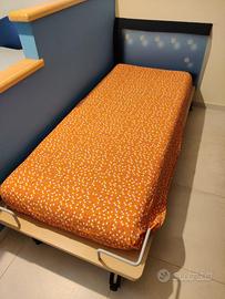 a) 2 letti singoli, di cui uno con rete a doghe e l'altro con ruote, completi di materasso Dorelan.