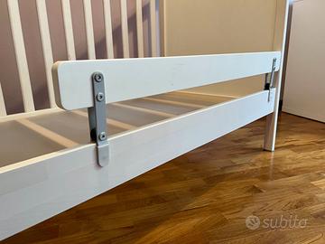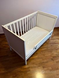 Lettino perfetto per bimbe e bimbi dai 0 ai 5 anni. Dimensioni 120x60 cm Configurabile in diversi modi: - con spondina (come da foto) - chiuso sui 4 lati - altezza del piano su cui appoggiare il materasso regolabile in 2 posizioni Materasso Vyssa somnat 10 type 2.