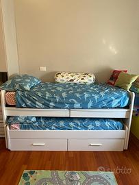 Lettino a castello in legno per bambini compreso di 2 materassi. Le condizioni sono ottime, lo vendiamo per acquisto altro letto matrimoniale per nostro figlio. Il lettino è smontato per facilitare il trasporto e potrà essere ritirato direttamente a casa nostra.