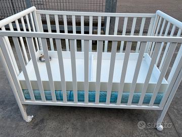 Comodissimo con ruote Lettino in legno a doghe con cassettone . Disponibile a parte materasso in memory ad euro 50 in più